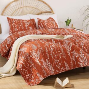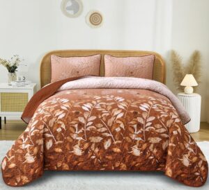 The bedspread in the main image features a beautiful cream floral pattern on a brown/orange background, adding warmth and an inviting vibe.