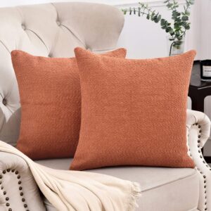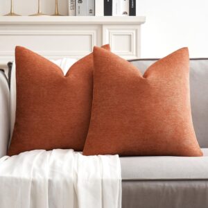 – A textured orange pillow adds warmth and complements the earthy color palette.