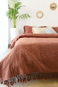 I found these burnt orange bedspread & duvet options to get a similar look. They are all beautiful in my opinion, but feel free to click on any of them to search for more similar brown and burnt orange duvets, comforters or bedspreads.