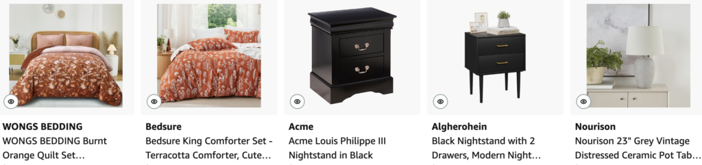I found these three options, but the first nightstand here is quite a match. You can definitely choose something that is more your style while still keeping with the overall look! Choose from more cozy bedroom options >